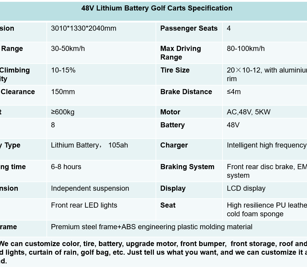 Premium 4 Person 48V Lithium Battery Golf Carts for Sale Powerful 5KW Motor